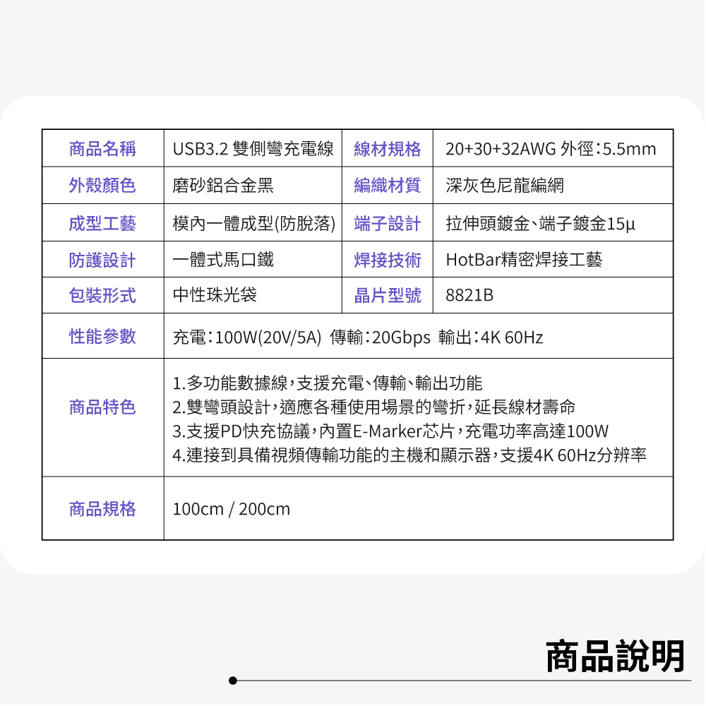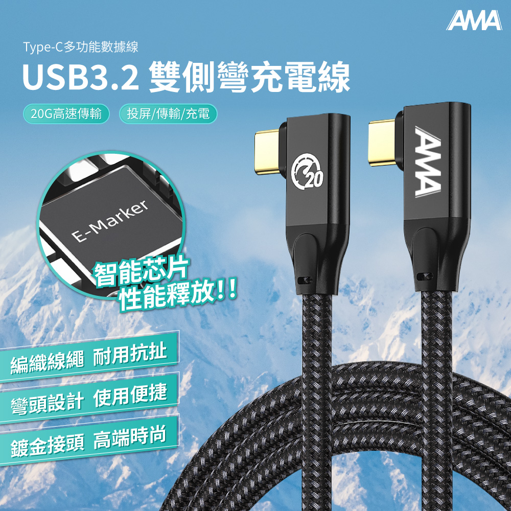 AMA USB3.2 雙側彎充電線