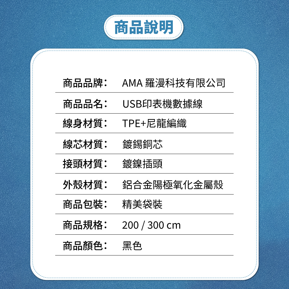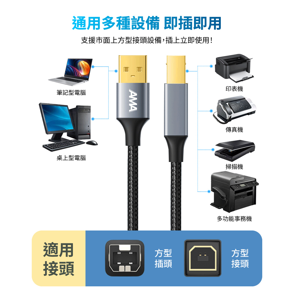 AMA USB轉印表機數據線