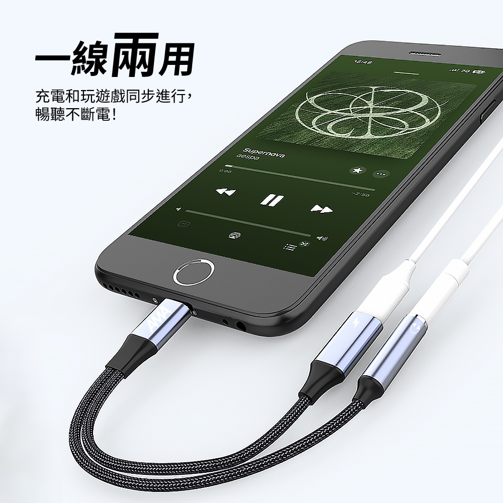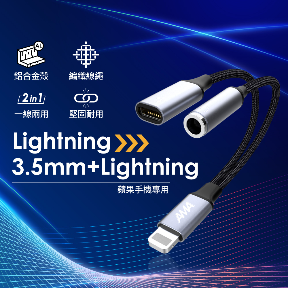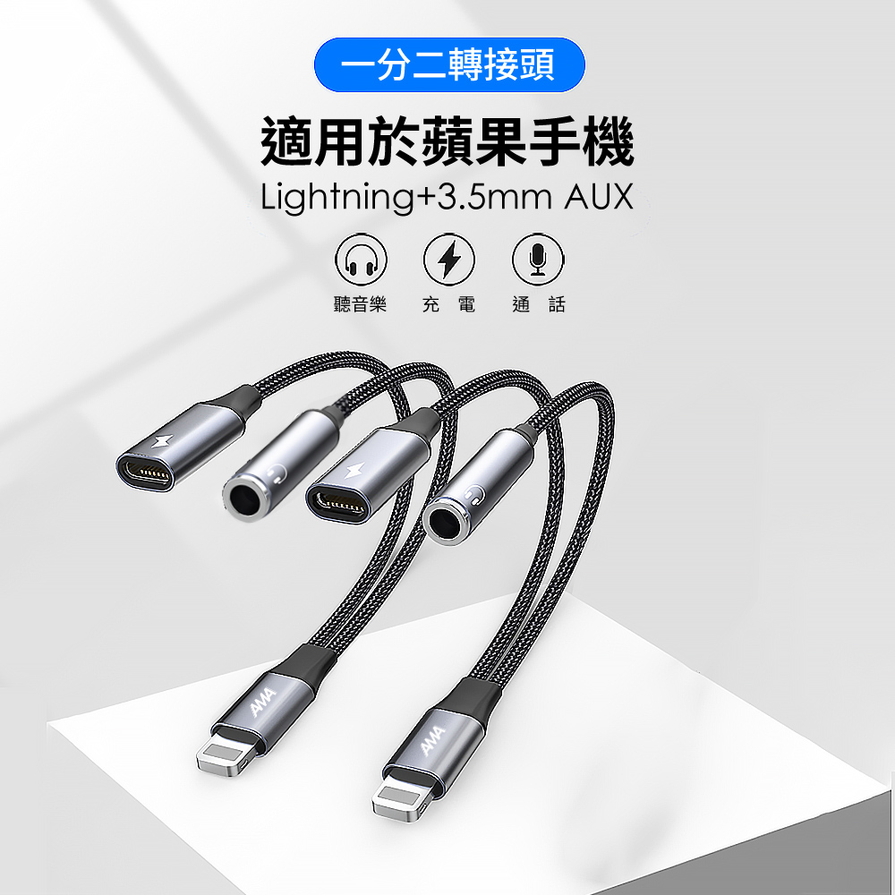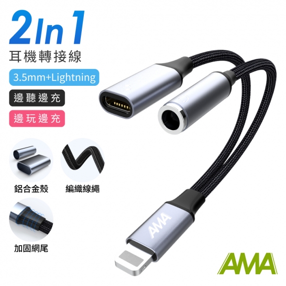 AMA 2in1 耳機轉接線 蘋果轉3.5mmAUX+充電頭