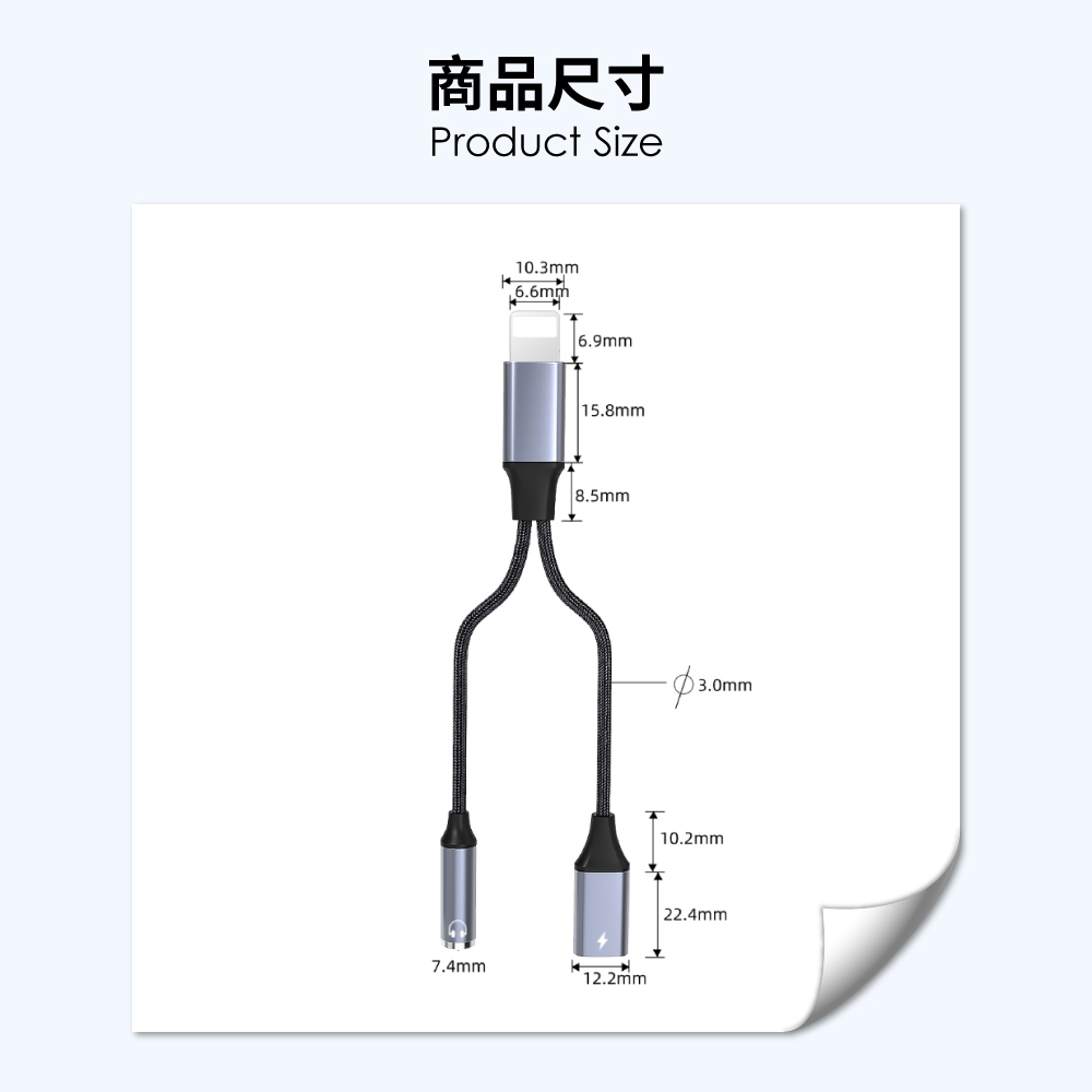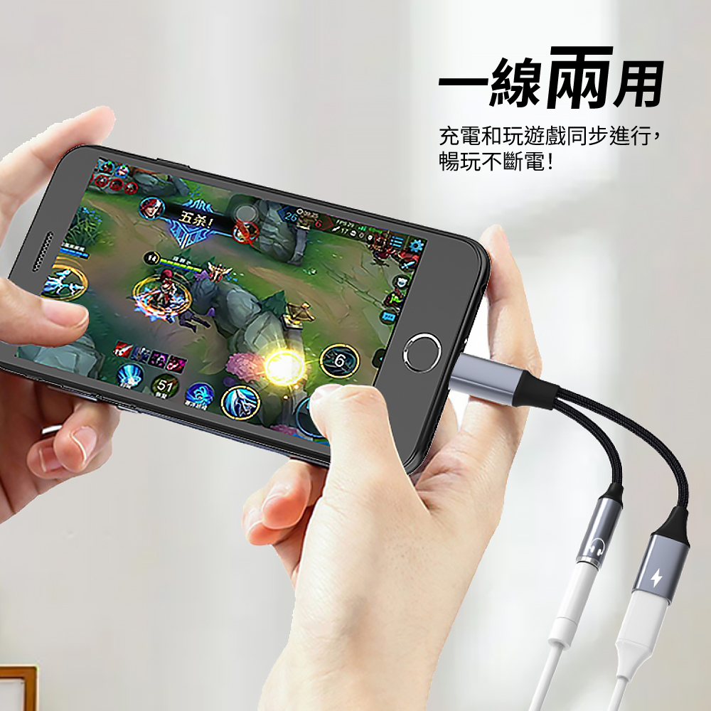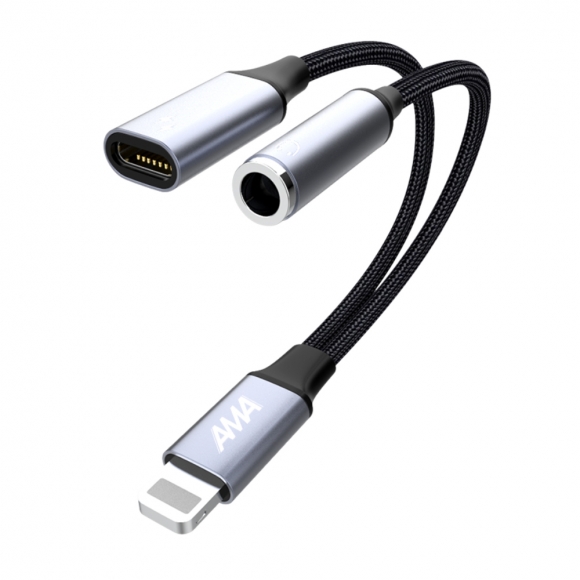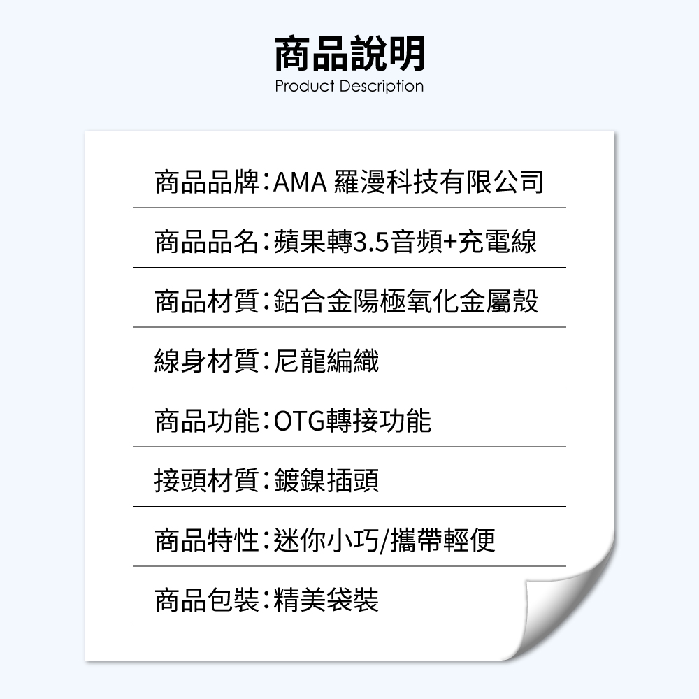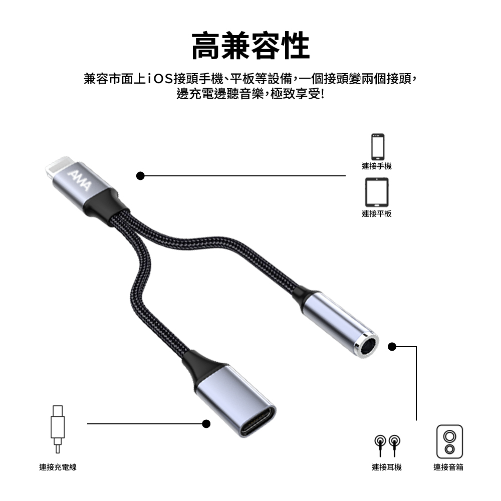 AMA 2in1 耳機轉接線 蘋果轉3.5mmAUX+充電頭